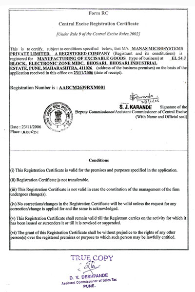 Central Excise Registration Certificate